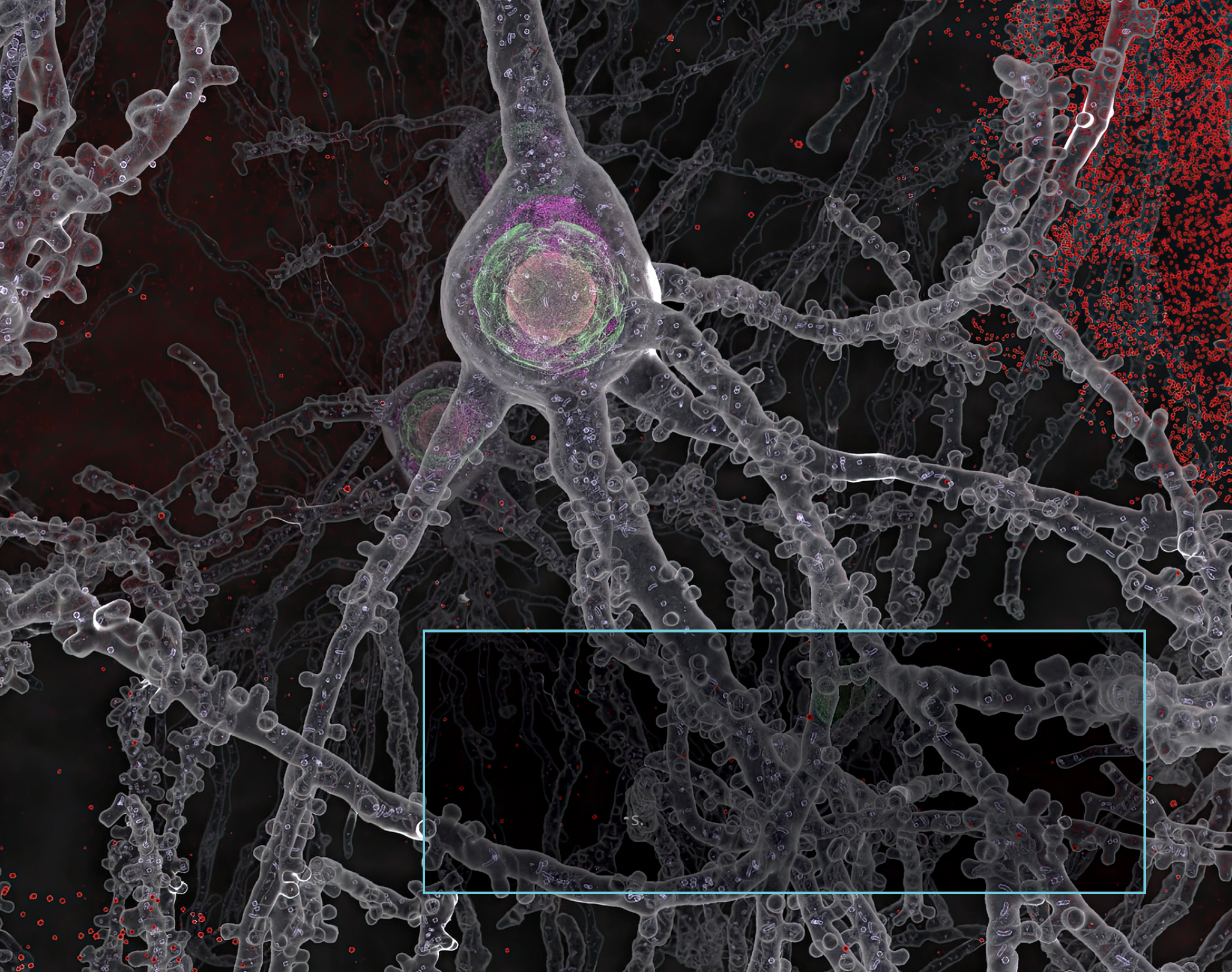We have incorporated the MERSCOPE imaging system into our work. This microscopy imaging system uses an approach called MERFISH (Multiplexed Error Robust Fluorescence In Situ Hybridization) to fluorescenvtly label hundreds of genes within a single brain tissue section, which allows us to identify brain cell types and understand how their expressions are changed by neurodegenerative diseases like Alzheimer’s disease.